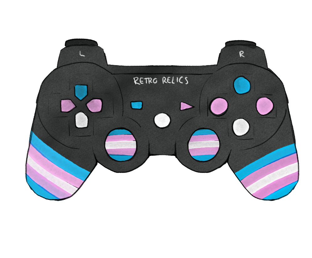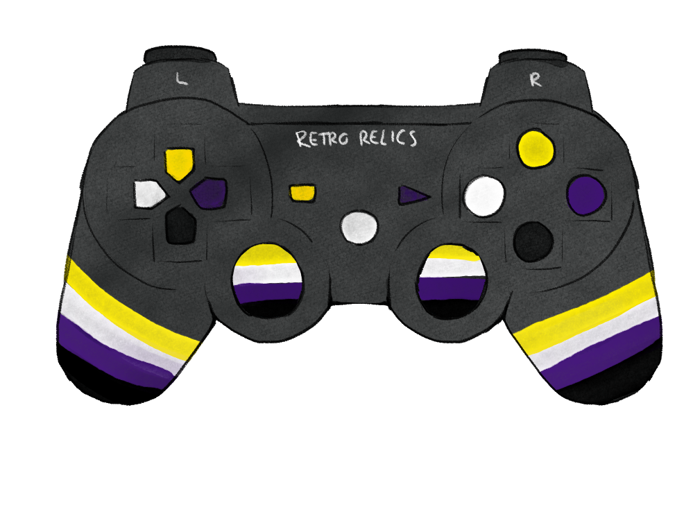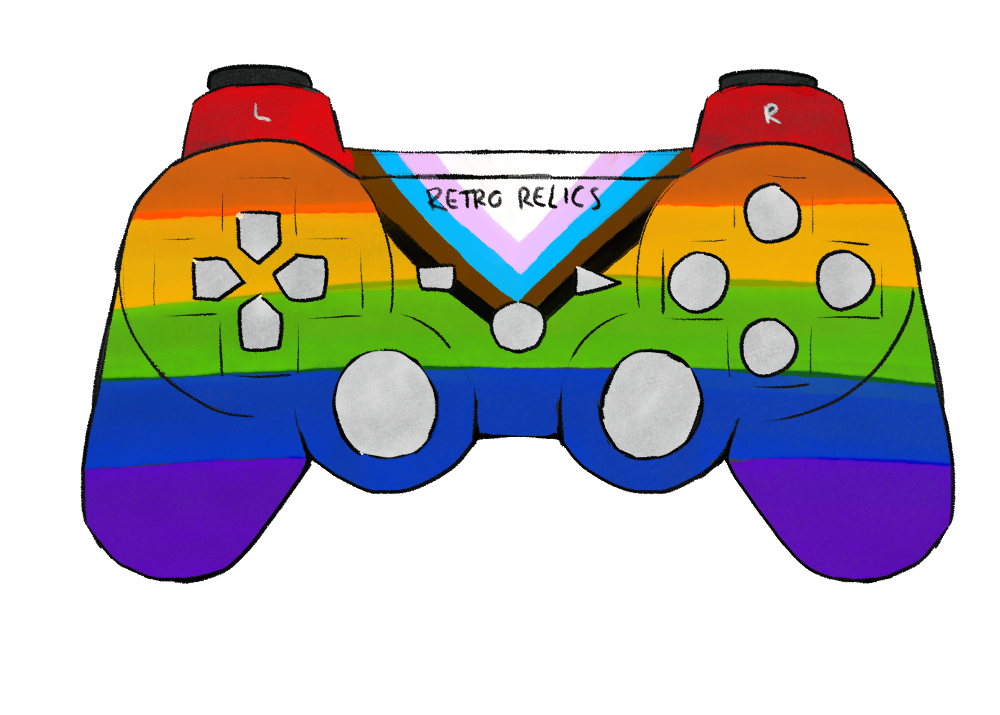 The third thing I worked on artistically were the designs for the controllers. The first few I made I designed to have a pride theme, thinking they would work toward our welcoming store, to make people in the LGBTQ+ community know that they were welcome there.